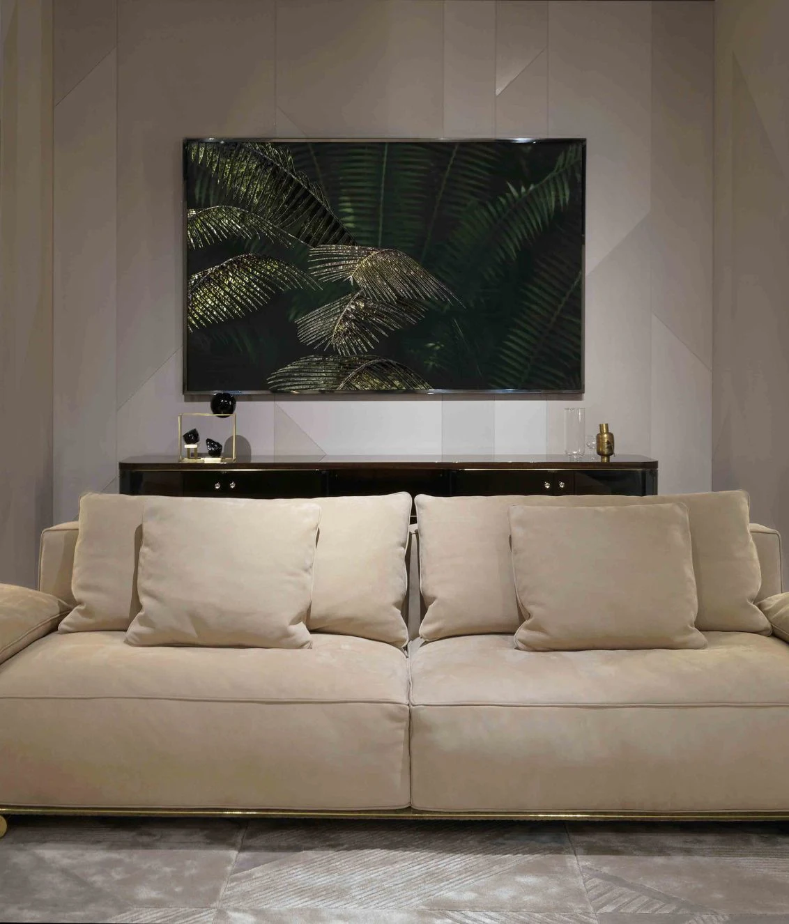 - Luxurious Suede Touch: Our bespoke sofas are upholstered in select, couture-grade suede fabric. Boasting an incredibly fine, velvety texture and a natural matte finish, the material is not only soft against the skin and breathable but also reveals rich, nuanced textures as the interplay of light and shadow shifts across its surface.