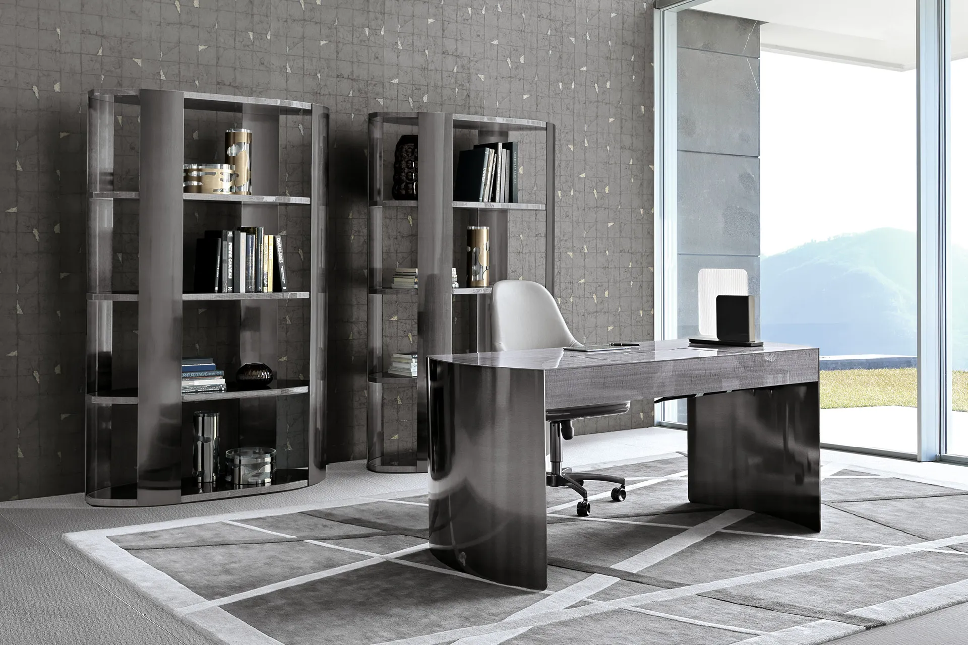 - Rare Shadow Wood Veneer: This bespoke home office desk is crafted from select natural wood, using a marquetry technique to create a shimmering visual depth. Combined with a mirror-gloss lacquer finish, it defines the material standard for top-tier Bespoke Furniture.