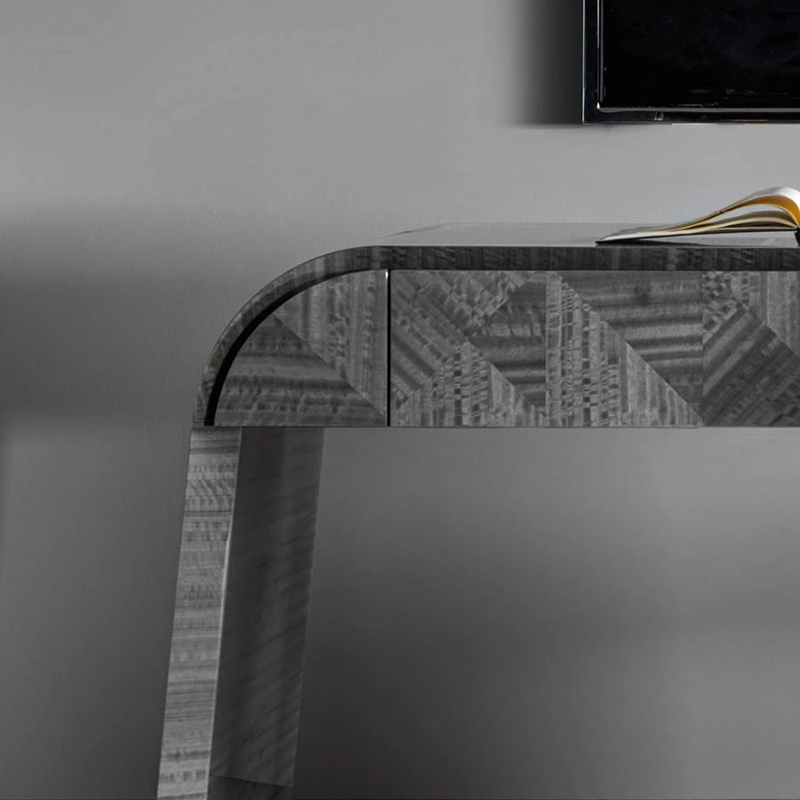 - Sculptural, Curved Design: This custom made desk features a streamlined, curved structure that breaks away from the rigid lines of traditional office furniture, infusing the space with avant-garde aesthetics and showcasing the dynamic tension of bespoke design.