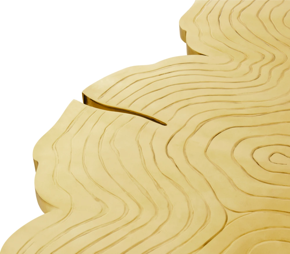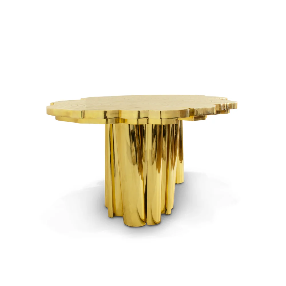 - Sculptural Metal Craftsmanship: Each bespoke dining table is individually cast and polished, ensuring that the intricate “wood stump” details become a bold, one-of-a-kind focal point.