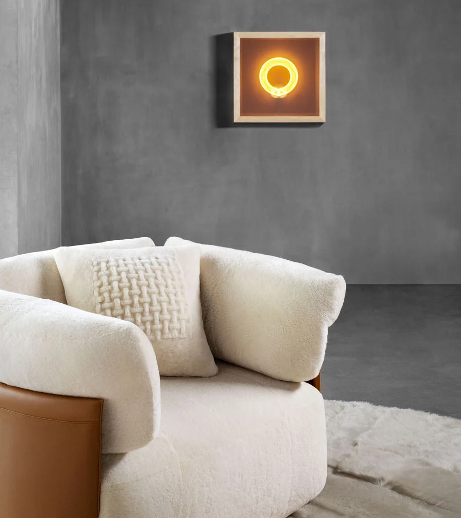 - Dual-Material Luxury: This custom-made armchair features a curated blend of ultra-soft Shearling upholstery and the robust texture of imported Saddle Leather, creating a harmonious aesthetic that balances warmth and refinement.