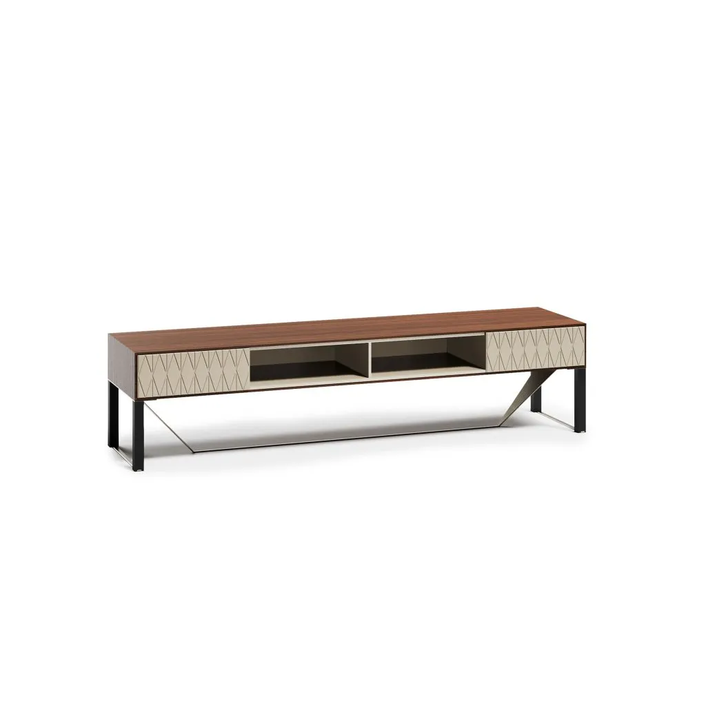 - Geometric-Textured Cabinet Doors — The side doors of these custom TV console tables are adorned with carefully selected, three-dimensional diamond-patterned lines. Possessing immense artistic tension and distinctiveness, these doors reveal a dynamic geometric beauty as light and shadow shift across their surfaces, elevating the piece beyond a mundane, flat facade.