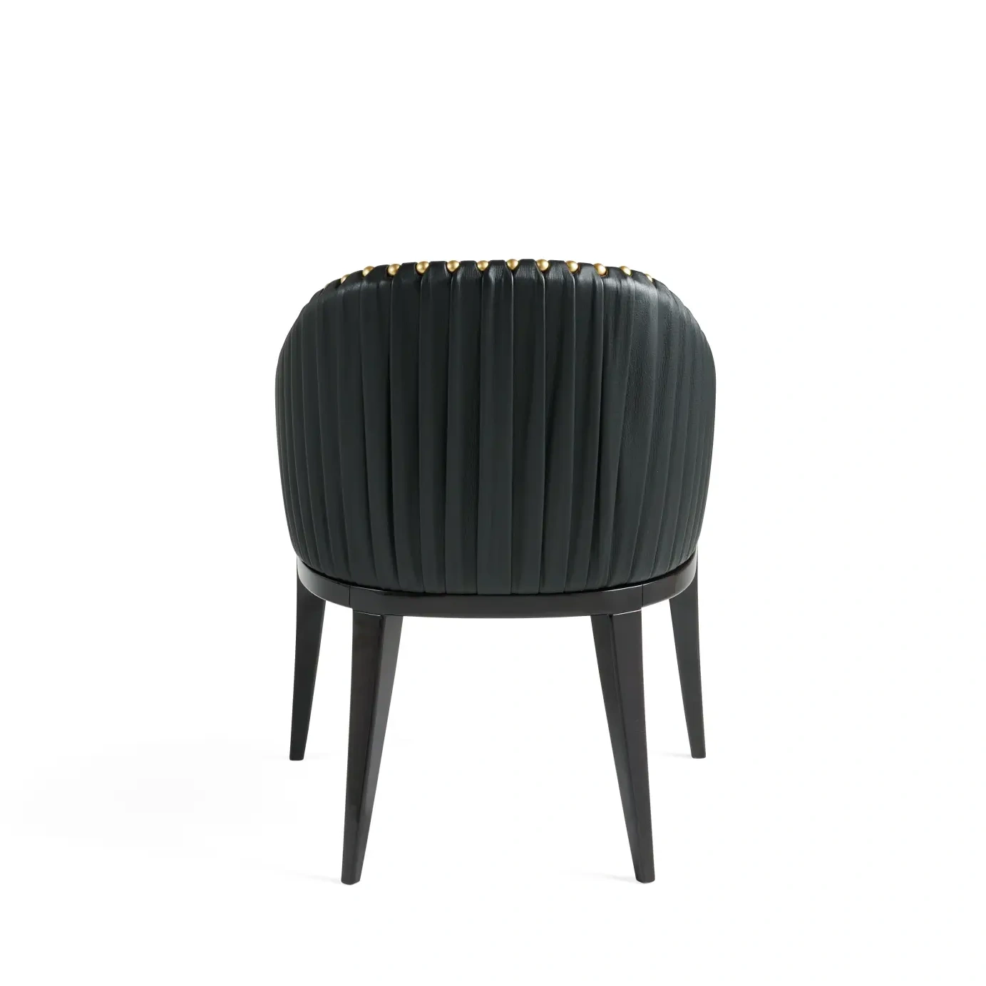 - Vertical Channel Tufting: This bespoke black modern dining chair features vertical channel tufting—a meticulous quilting technique that endows the chair body with a unique textural quality. It infuses the minimalist design with a sense of refined elegance, elevating the overall artistic appeal of the piece.