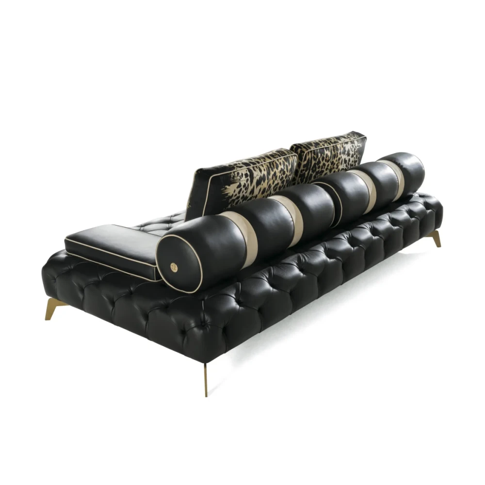 - Modern Design with Circular Pillow Backrest: This bespoke contemporary tufted sofa features an ingenious design where a continuous row of circular pillows forms the top of the backrest. With its soft, fluid lines, this feature breaks away from the rigid aesthetic typical of traditional button-tufted sofas, exuding an avant-garde, modern architectural beauty.